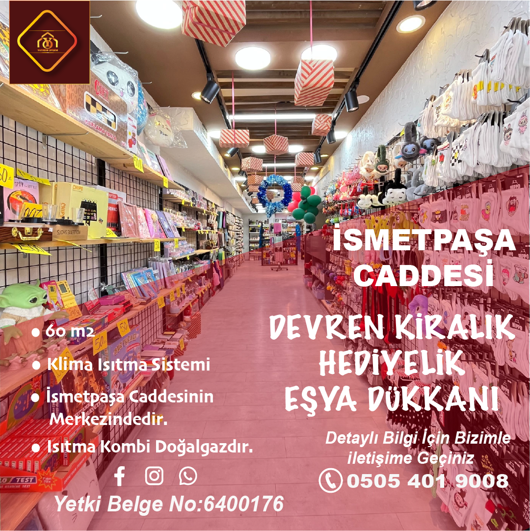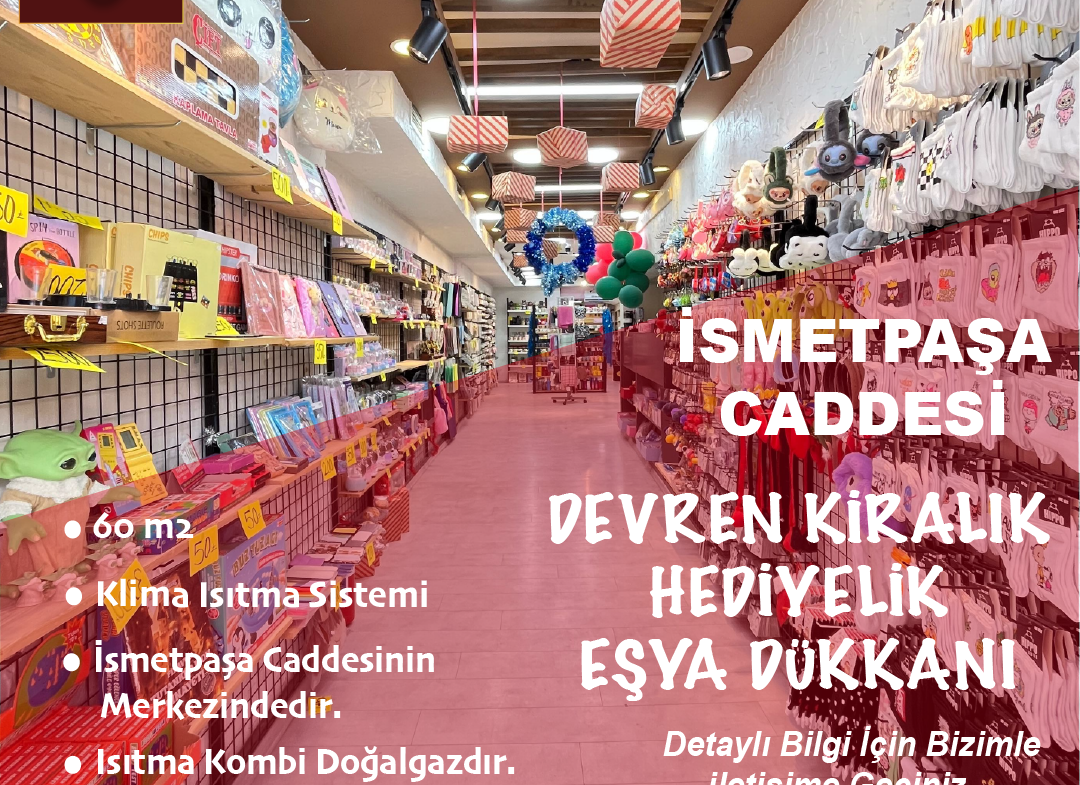İSMET PAŞA CADDESİ’NDE DEVREN KİRALIK HEDİYELİK EŞYA DÜKKANI